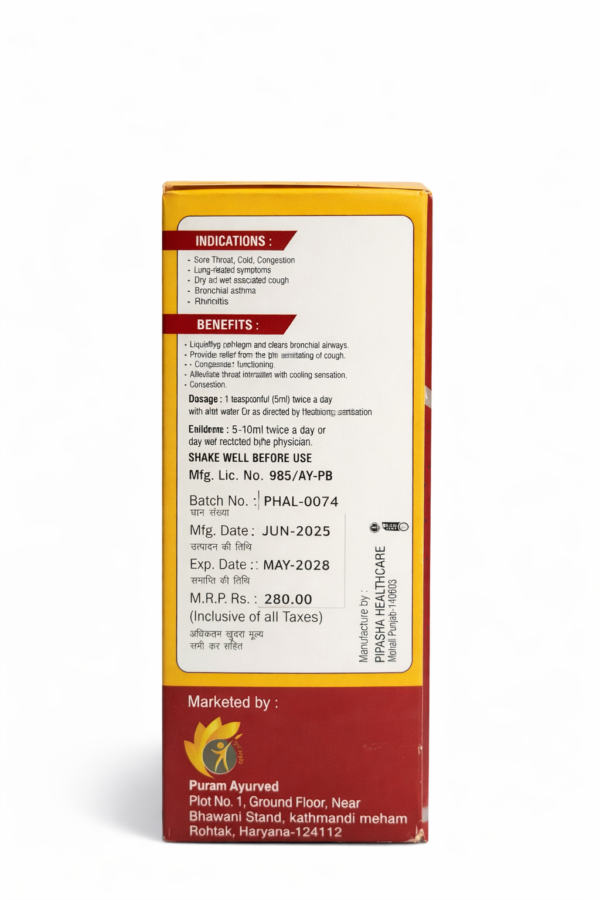 Cofmukti Cough Syrup is a natural, herbal formulation designed to provide effective relief from both dry and productive cough while soothing throat irritation and supporting respiratory health. Carefully prepared with traditional Ayurvedic herbs, this syrup helps clear congestion, ease breathing, and promote faster recovery from seasonal cough and cold.